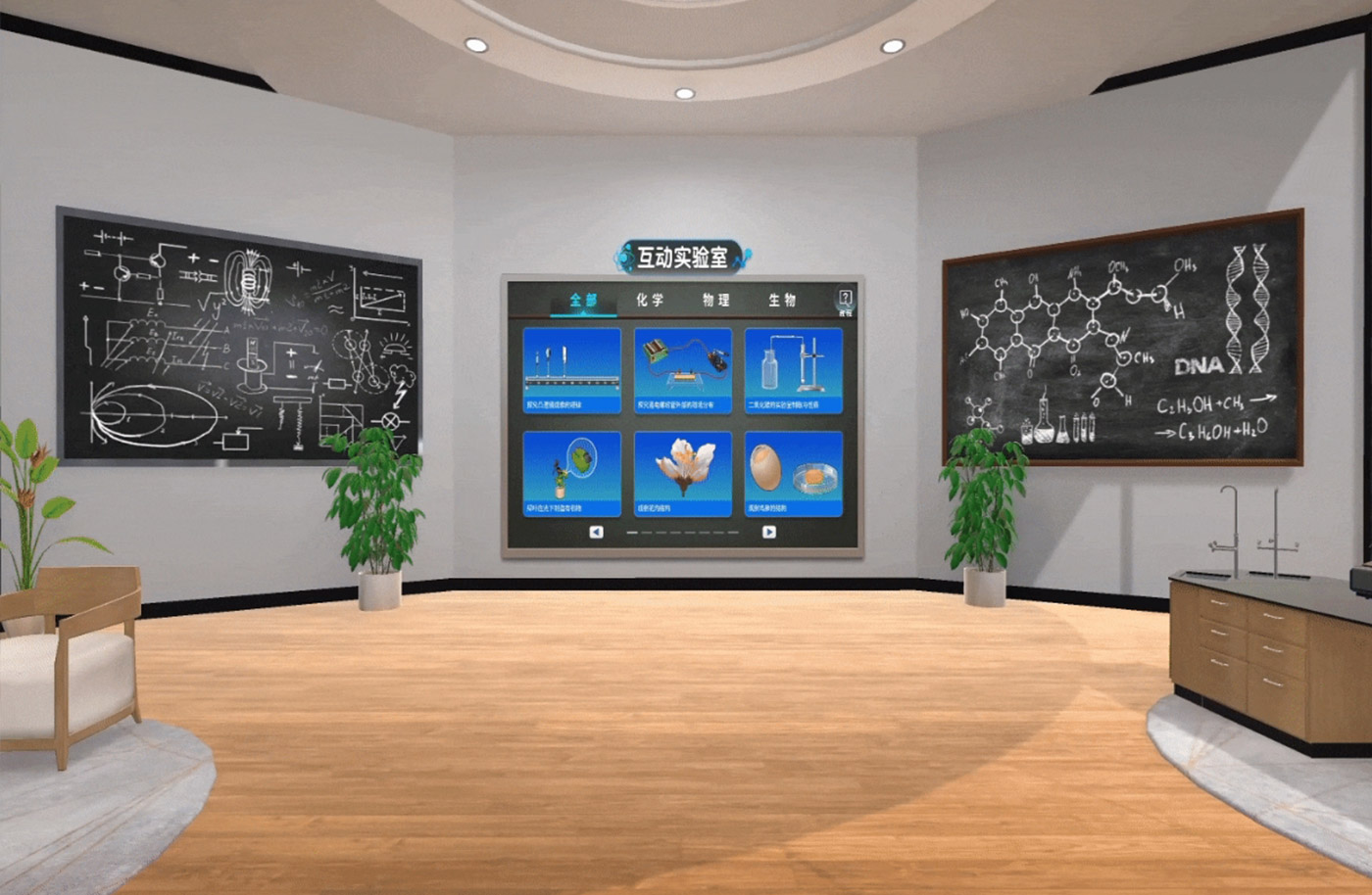 模拟物理、化学、生物实验场景,提供规范的实验内容、自由化交互的虚拟仿真实验室,让学生做到知行合一,让实验教学“安全、省时、省物、省心”。
